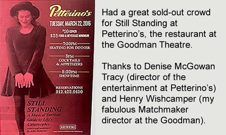 Other recent performances have included The Artificial Jungle by Charles Ludlum, directed by Everett Quinton (which got an Off-Broadway Theatre Alliance nomination for Best Revival of a Play), On The Town (gorgeous anniversary production at the Martha Graham studios), and An Evening of Rodgers & Hart which somehow landed me a nomination for a Broadway World Best Cabaret Performance Award. Surprisingly I was ranked next to Audra McDonald, Bebe Neuwirth and the late Marin Mazzie! And in March 2018 I was thrilled to be honored with André DeShields at one of Bobbie Horowitz's Cabaret tributes at Don't Tell Mama. Holland and I sang The Story Goes On and then I played for André singing None of Us Are Free (which I actually taught him a while back!).