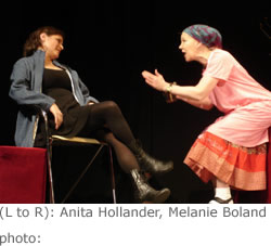 Most notable was the state funding for both arts and disability services. While we depend on funds from organizations like TDF and Artists International, in Europe, where Art equals Culture, state funding is provided, as well as funding for blind artists in Zagreb, including office and studio space, bar, access to a 300-seat theatre, street markings and devices for blind pedestrians around of these facilities. Croatian theatre artists do not lack for innovative production values either, while their young audience work is tremendously clever and economical. The Polish and Serbian companies sported sophisticated multi-media effects, and the Belgians were wildly creative and imaginative. Above all, these artists seemed to be respected, whether sighted, blind, or blind and deaf. They had a confidence and pride in their work which implied support and acceptance in their own cultures. Disabled people are used to terms like "brave, courageous, inspiring, indomitable spirit," but this theatre, riveting by nature of its story and craft, was more mind-blowing than inspirational.